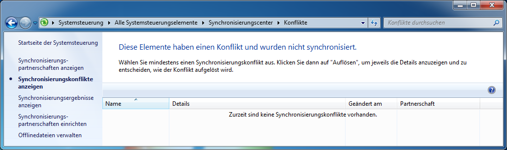 Wer bereits mit Offlinedateien experimentiert hat, oder beispielweise ein Smartphone mit dem Laptop synchronisiert, bekommt u.U. bereits vorhandene Synchronisierungspartner(schaften) angezeigt, wie z.B. hier: