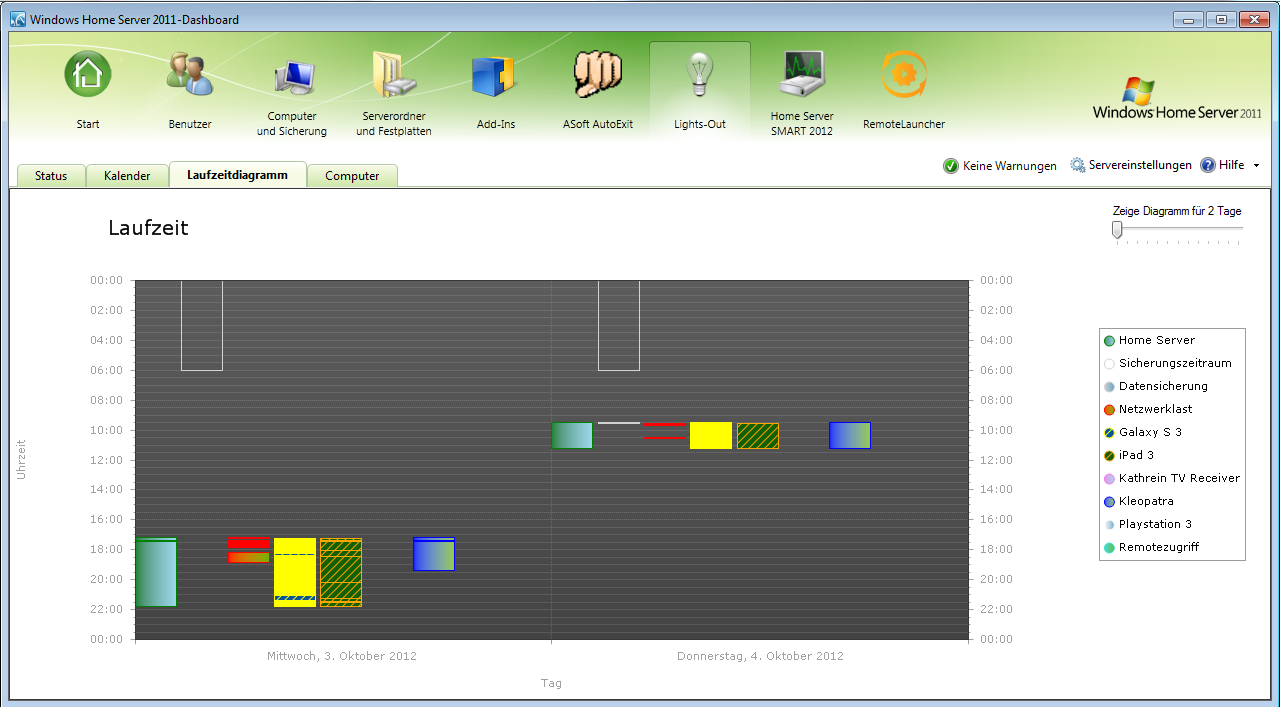 Jetzt mein Problem, sobald ich mein S3 oder iPad in die Überwachung eingliedere war es das mit dem Ruhezustand, der WHS läuft durch.