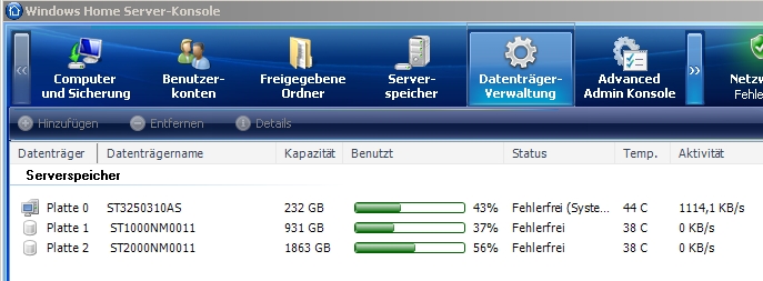 WHS:inzwischen abgeschaltet Acer H340 mit 1x 1 TB (WD10EAVS), 3x 2 TB (2 WD20EARS und 1 ST2000DM001), PP3+UR2
