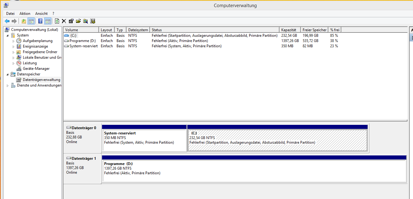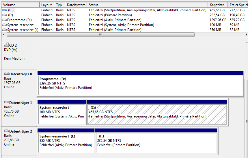 Den Screen von der Datenträgerverwaltung hänge ich gleich ran..