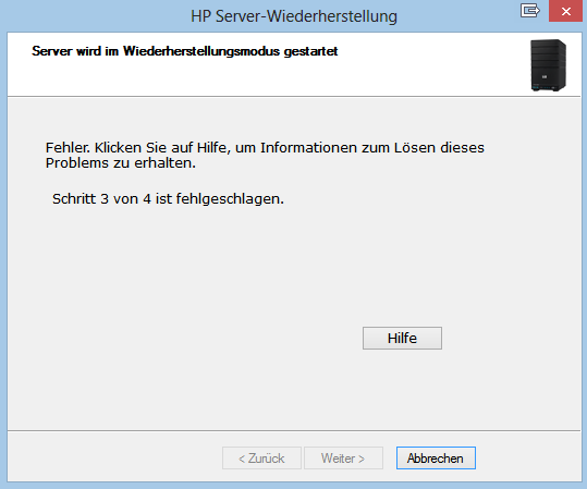 Zum Rücksetzen/Wiederherstellen bin ich ja gar nicht gekommen: Ich starte WHSRecovery von der CD und bei Schritt 3 (von 4) bricht es ab. ICh komme also gar nicht erst zu einem Optionen-Menü!