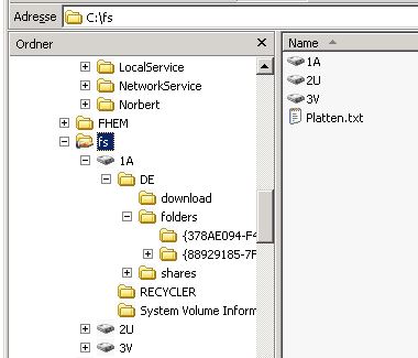 Schau bitte als erstes, ob es im Verzeichnis c:\fs\ Inhalt gibt. Es müsste dort ein Eintrag "13" existieren, der ein Verweis auf die 2. Platte ist