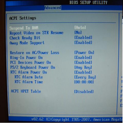 My computer simply never wakes up. Neither by depressing the key at that restaurants PS2 keyboard, still by WakeUP over WOL. Only which wakes it up is pressing the switch at the computer. All driver updated, and even the Bios geupdatet. The attitudes can look at themselves you in the pictures here http://www.webservice-kohl.de/bios . Greeting Markus