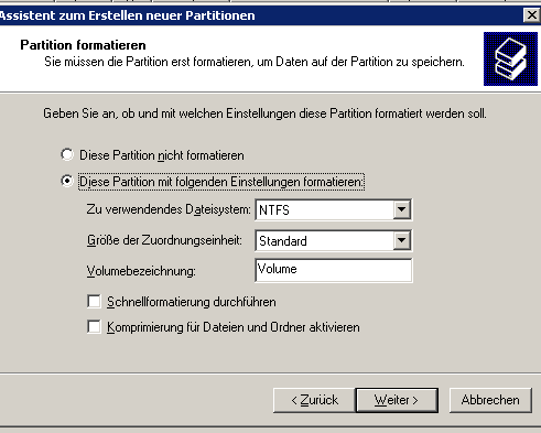 By the way: ich habe keinen Neustart gemacht, die Platte wurd nach der Partitionierung erkannt.