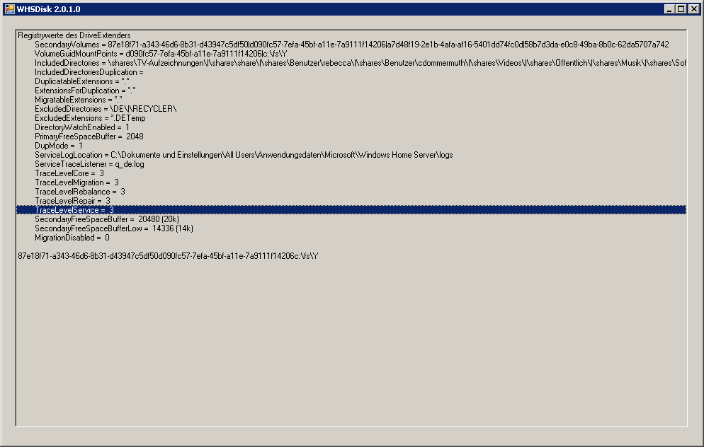 ist das alles ? könntest du die erzeugte Output-Datei per PN schicken ? WHSDisks.log auf dem WHS-Logverzeichnis