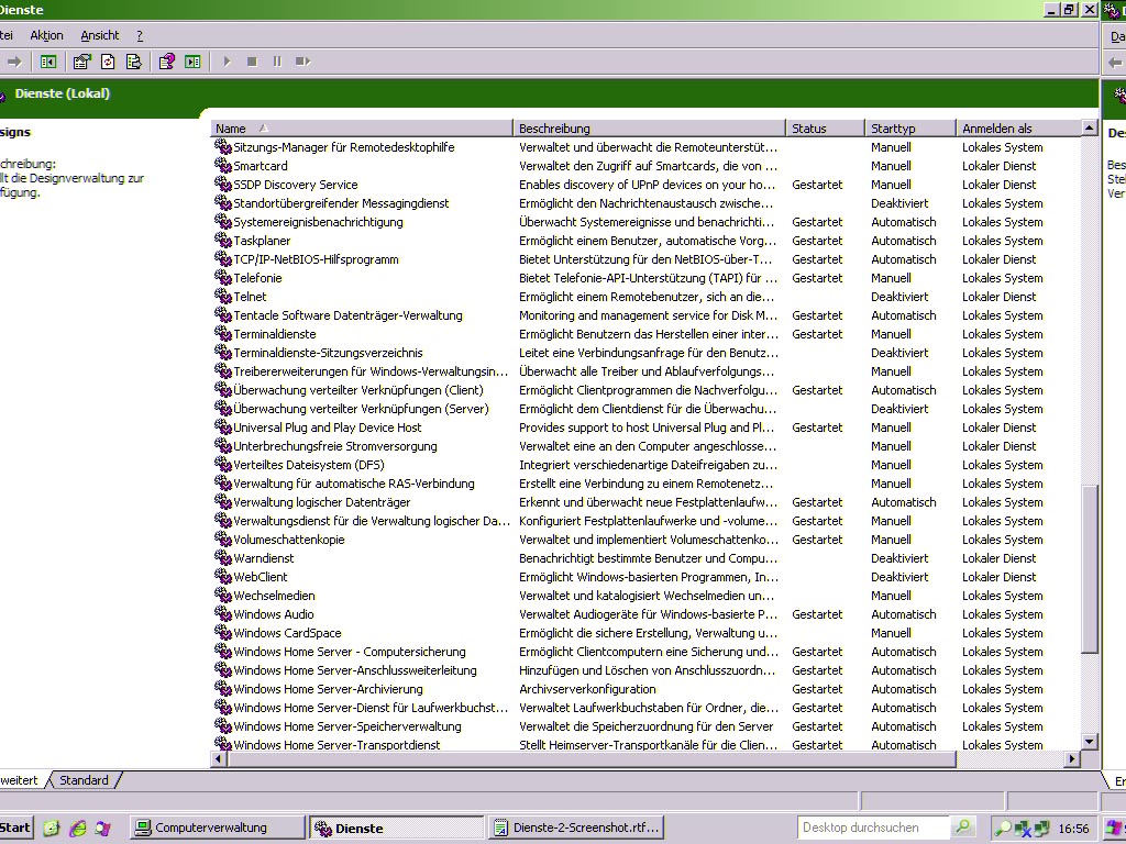 Ich hänge mal in 4 Screenshot an, welche Dienste vorhanden sind und welche laufen/deaktiviert sind...