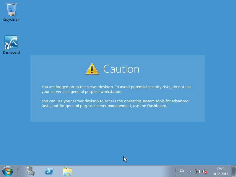 Mit einem letzten Klick auf "Close" ist damit das Setup abgeschlossen und wir erhalten das erste Mal den Desktop des WHS2011 zu Gesicht.