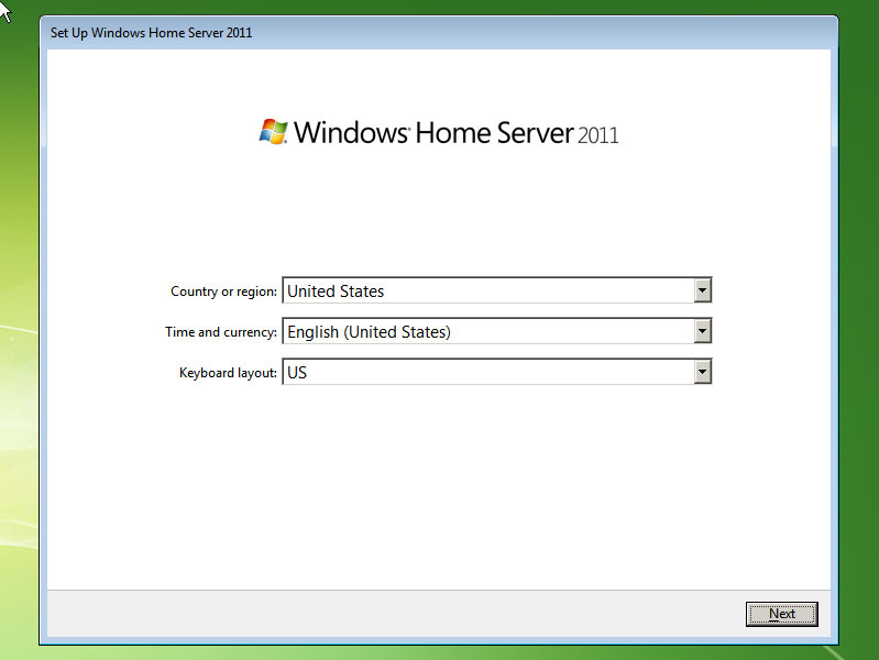 Mit einem Klick auf "Next" bekommen wir die EULA zu sehen, die wir mit dem Setzen des Häkchens bei "I accept the license terms (required to use Windows Home Server 2011)" und einem Klick auf "Next" bestätigen.