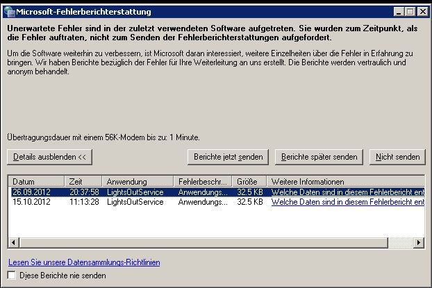 Und zu guter letzt, kommt auch nochmals die Fehlermeldung mit dem LightsOutService: