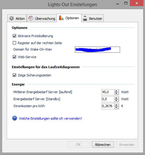 Mir ist auch noch aufgefallen, dass der Server jede Nacht zu unregelmäßigen Zeiten zwischen 3 und 5 Uhr 1 x für 5 Minuten aufwacht. Die Einstellungen des Netzwerkadapters sind alle korrekt (In der Energieverwaltung der Karte sind alle drei Haken gesetzt, "Aktivierung durch Musterübereinstimmung" ist deaktiviert, "Wake On-LAN herunterfahren" ist aktiviert und "Aktivierung durch Magic Packet" ist aktiviert). Es handelt sich um eine Realtek Netzwerkkarte. Auf der Startseite von Lights Out steht nur "Aufwachen [Unbekannt]". Bekommt man irgendwie raus was das Aufwachen verursacht?