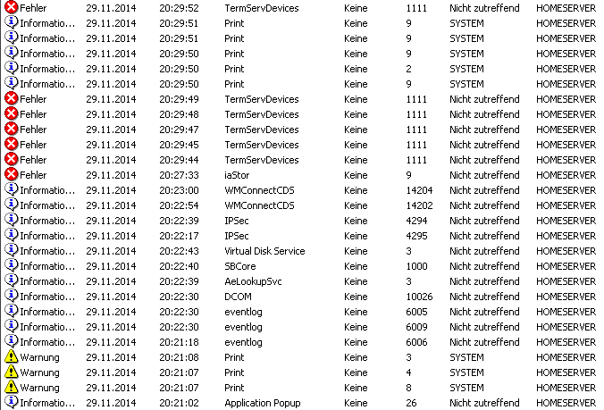Das ist aber Standard-Windows ... mach doch erst mal eien Screenshot der aktuellen Fehler in der Übersicht von SystemSorry, wenn ich jetzt doof frage, aber wie krieg ich das zu Dir? Soll ich z.b. System (dort sind viele Fehler vermerkt) abspeichern auf dem WHS? OK, nicht steinigen, ich hab noch nie auf der Oberfläche gearbeitet.