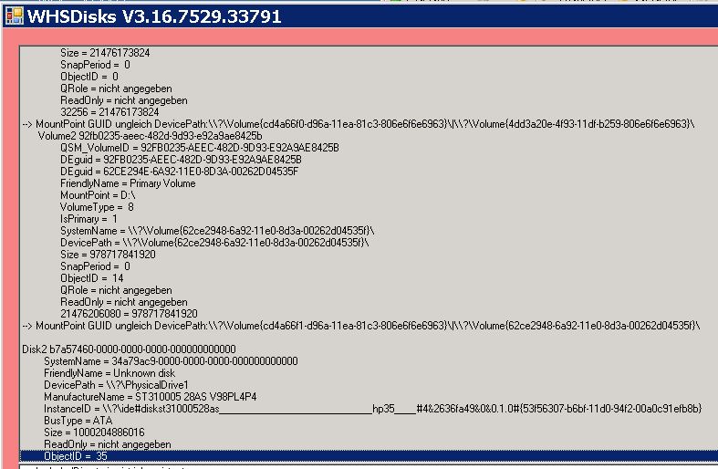 und kannst du bitte noch mal WHSDisks aufrufen und dann bei der Fehlermeldung auf Details klicken