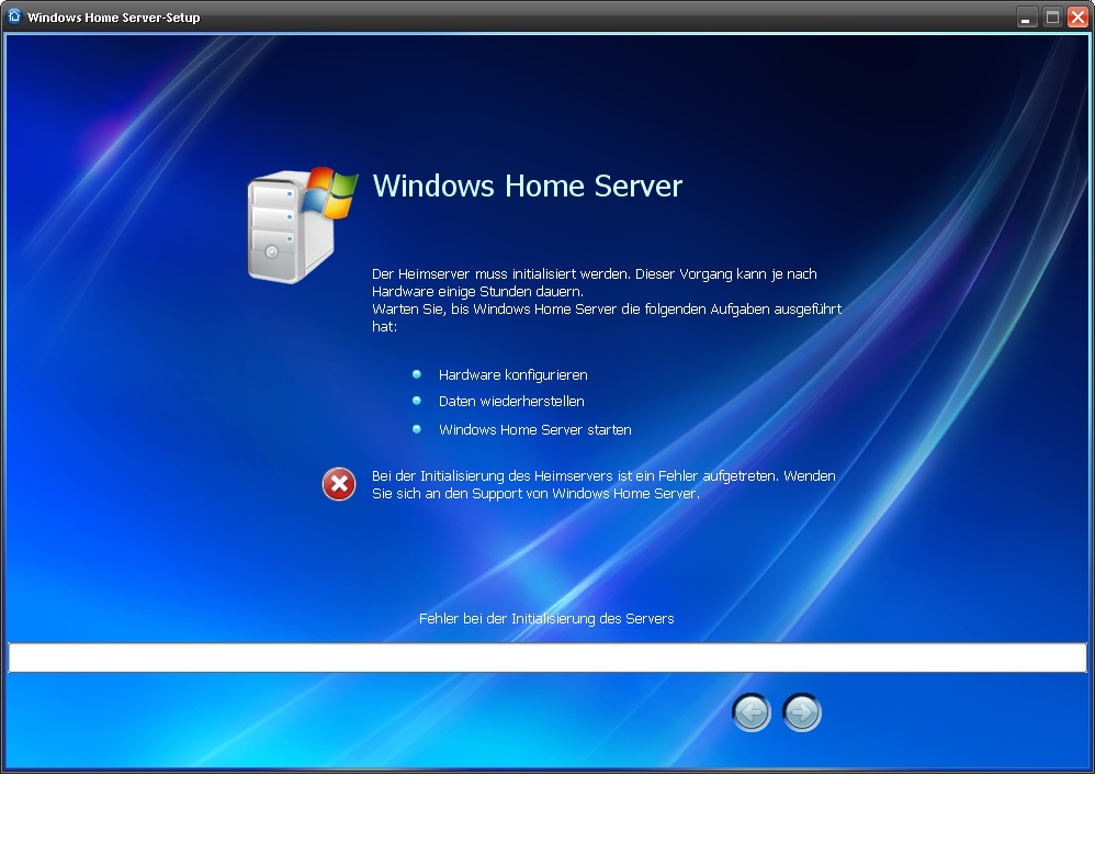 Wenn man jetzt nicht schnell genug den Versuch den passenden Treiber für z.B. die GFX od. TV-Karte zu installieren abbricht, wird die Hardware-Erkennung durch den WHS blockiert und dieser schafft seine Installation nicht.