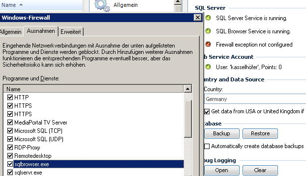 Ich habe MediaPortal server noch installiert. Hierbei wird auch eine MS SQL Datenbank installiert. Könnte das, dass Problem sein?